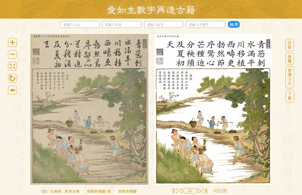 爱如生数字再造古籍平台(zaizao.er07.com)将分批投放,欢迎使用,恭候批评,以图改进。
