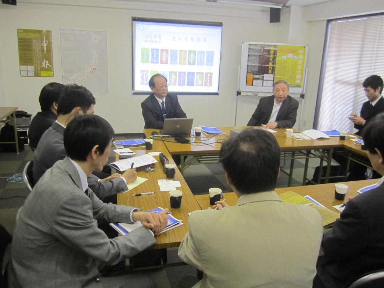 图2:刘俊文教授在中国国际图书贸易总公司东京办事处举办的爱如生数字产品研讨会讲解,参加者有日本东京各书店一线工作人员20余人。