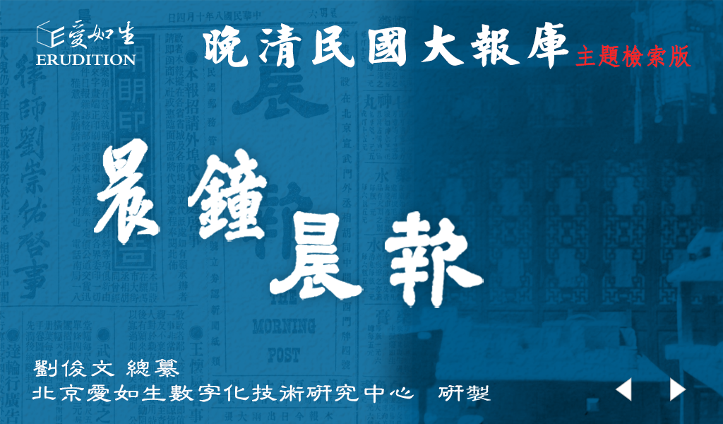 晚清民国大报库收录的晨钟晨报,自1916年8月15日创刊至1928年6月5日终刊,现存共4008号。