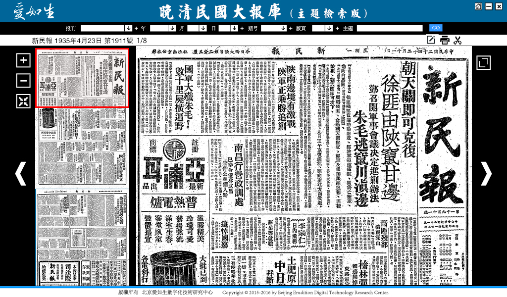 晚清民国大报库收录的新民报,收录新民报南京版,自1929年9月9日创刊至1948年6月30日停刊,现存共2769号。