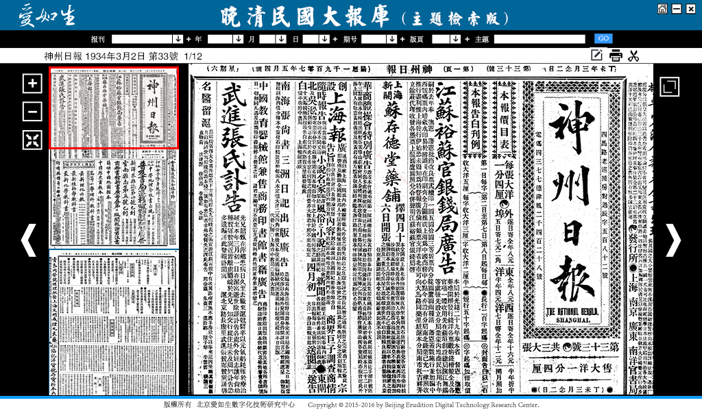 晚清民国大报库收录的神州日报,自1907年4月2日创刊至1946年12月15日终刊,现存共6477号。