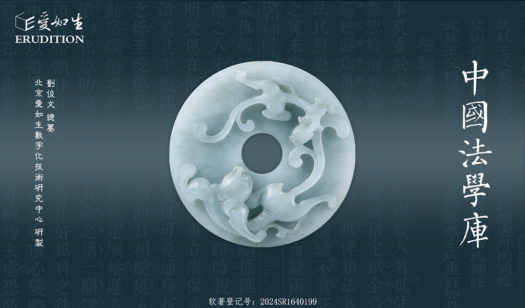 中国法学库是专门收录历代法学类典籍的全文检索版大型古籍数据库,由刘俊文总纂,北京爱如生数字化技术研究中心研制。