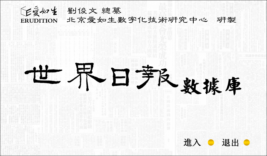晚清民国大报库收录的世界日报,自1925年2 月10日创刊至1937年8月停刊,现存共3454号。
