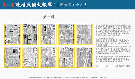欢迎广大个人用户踊跃使用并提出改进意见。晚清民国大报库(主题检索版)个人版网址:http://idb.er07.com/