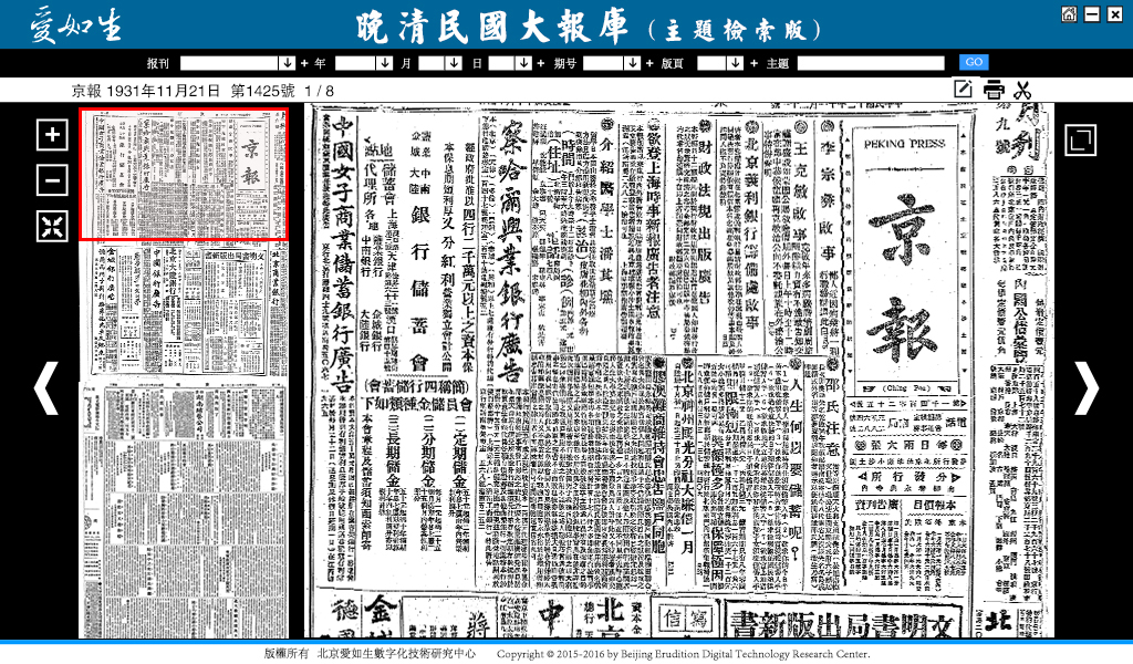 晚清民国大报库收录的京报,收录现存自1919年2月6日至1937年7月28日共5222号。